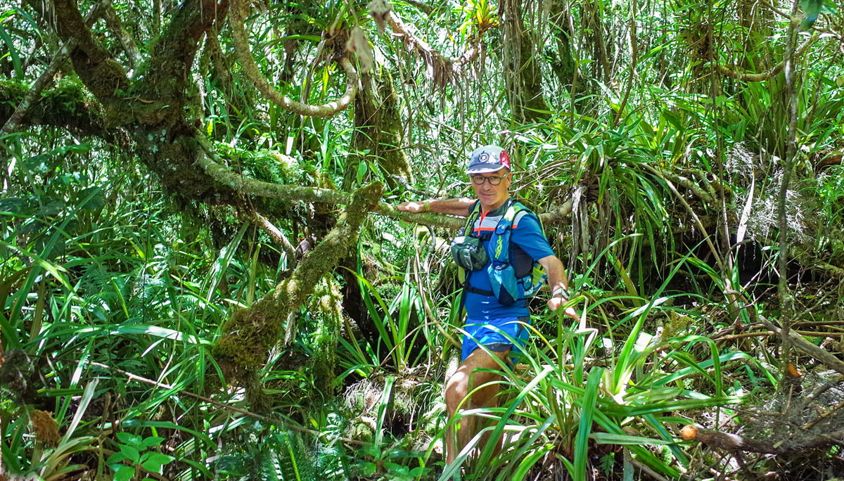 Le palimpseste des pistes s’efface, pan par pan. Si le trail a pu permettre d’exercer une certaine pression pour entretenir, a minima, certains sentiers, les traileurs de la fin du 20ème savent que les plus beaux ont été abandonnés. Pour ne prendre que quelques exemples emblématiques : 3 citernes et Cage aux lions sur les grandes pentes du volcan ; sentier des Lianes de Bras Panon à Bélouve ; de La Bretagne, Bassin du Diable, des Lataniers, dans le nord ; Dioré, Takamaka, dans l’est ; d’autres, historiques, à Mafate, ou au sud, îlet Marron par le Bras de la Plaine, etc. Il n’est plus que de rares experts, tel Martial Bertrix et ses quelques compagnons d’excursions, à s’aventurer, en mode coupe-coupe et cordes, sur d’anciennes voies jadis remarquables, désormais limite praticables même aux plus téméraires… Mais attention à ne pas subir les foudres des autorités ayant délaissé ces espaces naturels, au motif d’avoir nui à quelques feuillages en s’y faufilant… Quand on pratique la nature depuis longtemps à La Réunion, on se retrouve contraint à devoir faire le hamster d’un terrain de jeux en réduction, dédiés aux néo-traileurs et néo-touristes ayant perdu le sens de l’authentique aventure en nature, comme une vraie connaissance des profondeurs de l’île… Or, la vraie montagne n’est pas un stade ; nous y avons des interactions de vies dans des options inventives que nous nous offrons mutuellement, elle qui nous a fait, nous qui l’en vénérons par les meilleures complicités créatives, esthétiques, sensuelles. J’avais inauguré des traversées ouest-est (ou l’inverse), mais dès lors que tant le sentier Dioré menant à Saint André, que le sentier des Lianes menant à Bras Panon (de longs et exigeants parcours) demeurent durablement fermés, et risquent fort de le devenir définitivement, ces possibilités s’éteignent. Avec un ex directeur de l’ONF, nous avions envisagé un magnifique tour complet de la caldeira volcanique, – Tremblet, Nez coupé du Tremblet, Nez coupé de Sainte Rose, sentier de la Cage aux Lions, Bois Blanc, ou l’inverse – mais le rempart du Tremblet est désormais le plus souvent fermé, cependant que celui de Ste Rose est définitivement abandonné. Tout le vaste plateau de la Plaine d’Affouche est aussi abandonné, et de confidentiels points d’eau qui résistèrent pour les aventuriers, n’existent plus. C’est même le cas, tantôt au gîte des Chicots, tantôt à Grand Place, à la Grande Chaloupe, et j’en passe… Et que dire de tous les refuges qui ont été détruits, ayant permis des escales en des lieux sauvages à progressions difficiles… Les saisons cycloniques sont beaucoup plus fortes que les capacités dont dispose l’ONF pour la maintenance des sentes… Cette situation renforce l’option trail pour hamsters. Des épreuves originales, comme le trail-orientation « Poon Tour » fait en duo avec Arnaud Moisan, s’en retrouvent limitées dans leur concept.