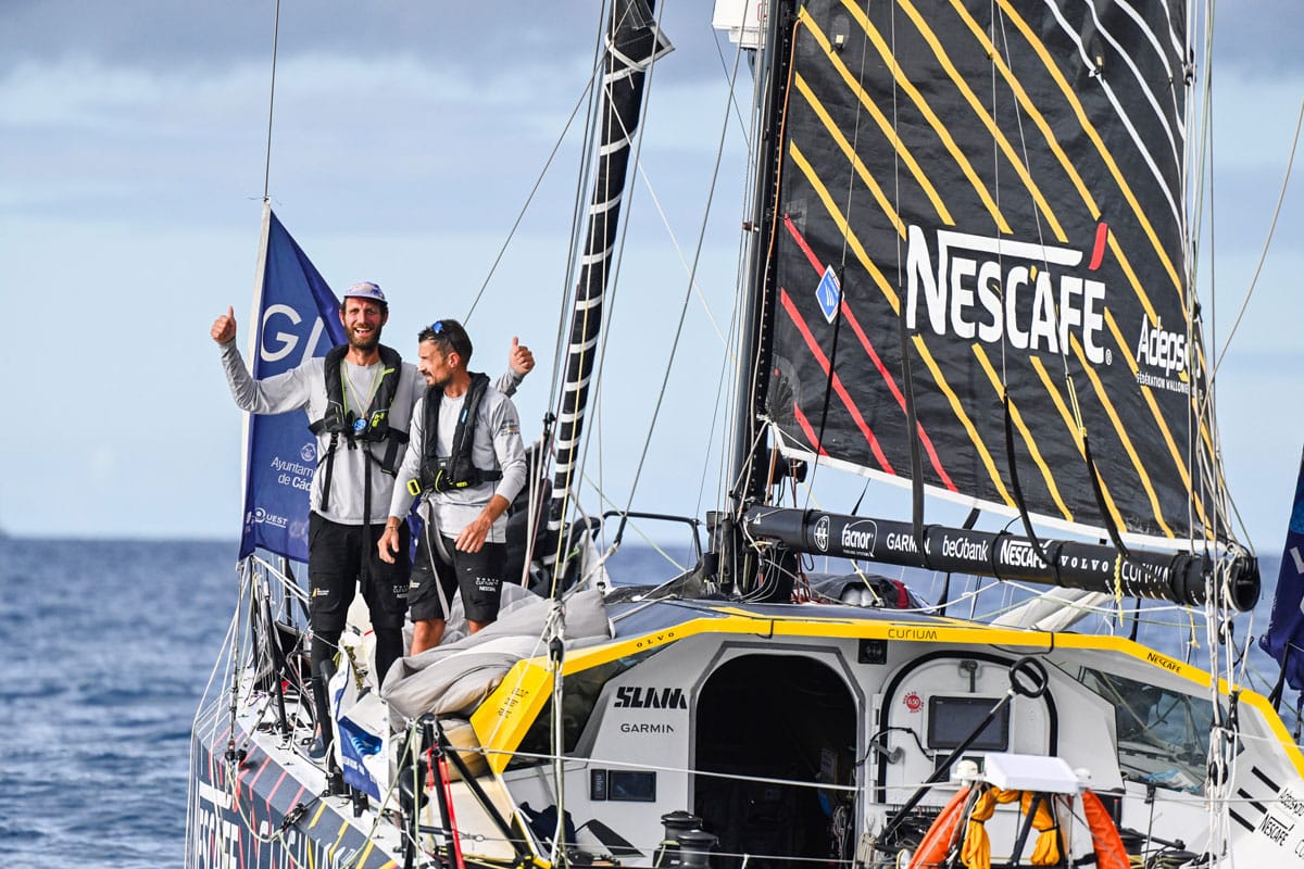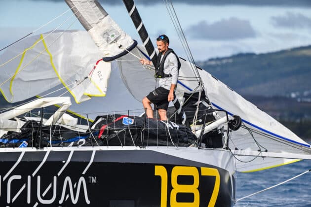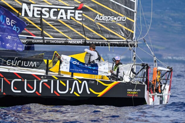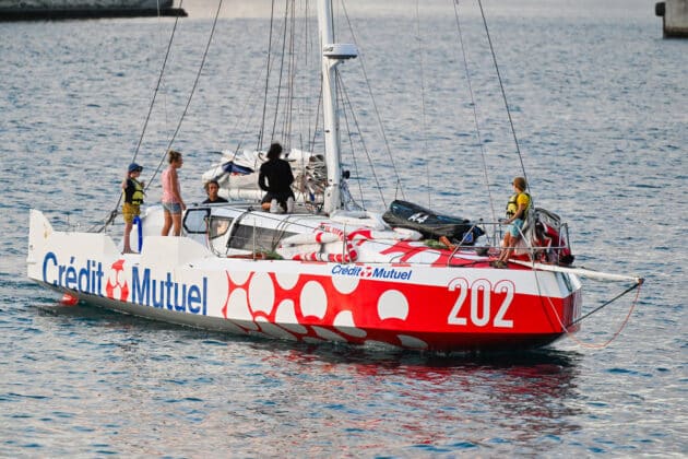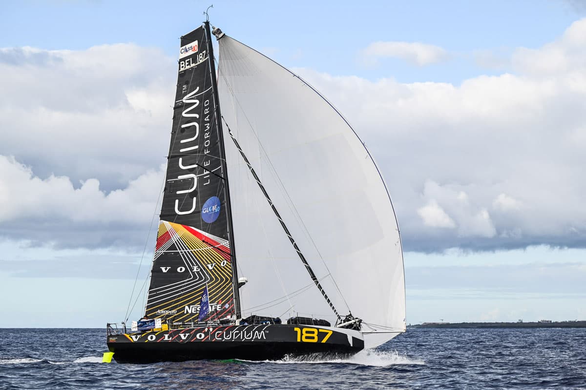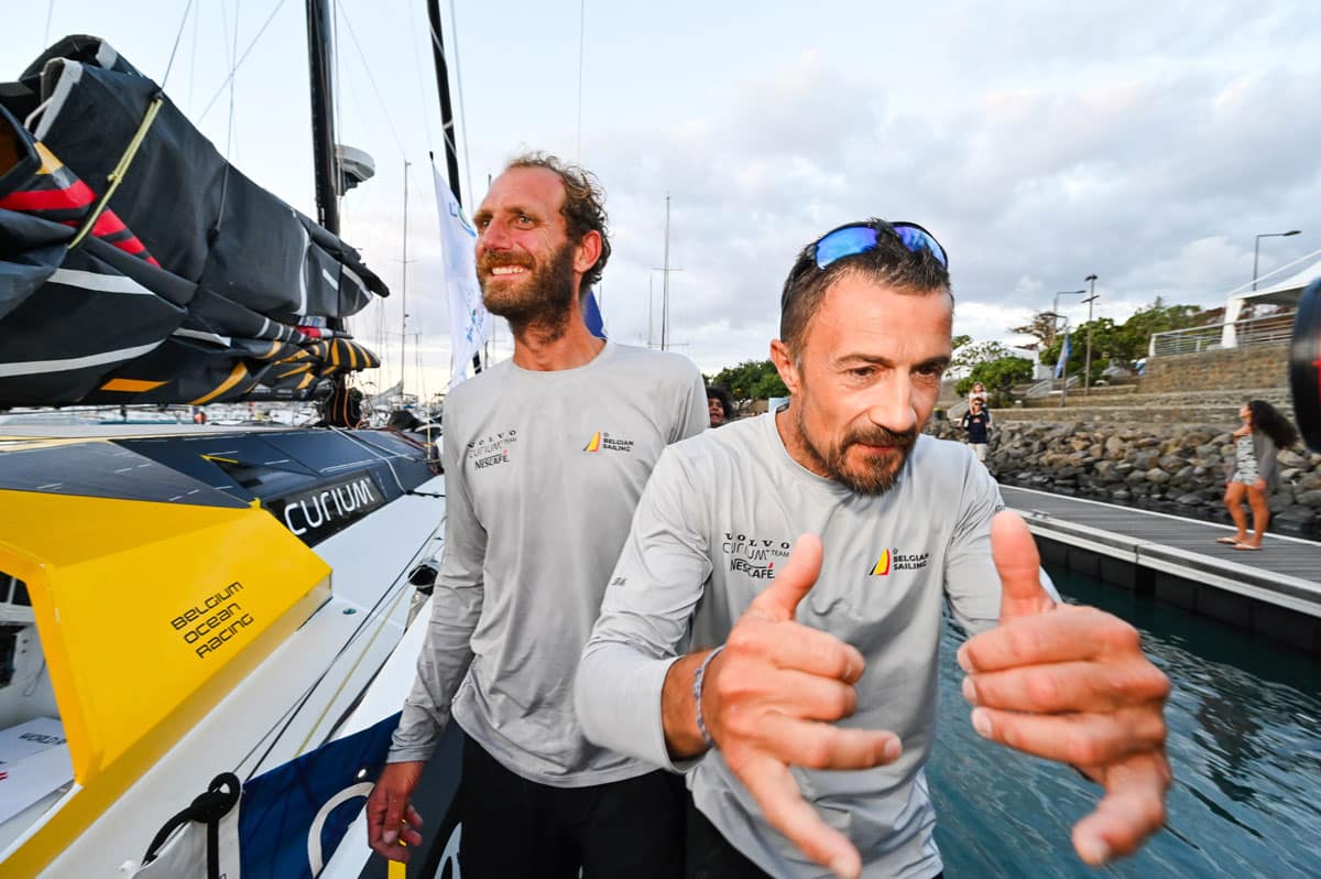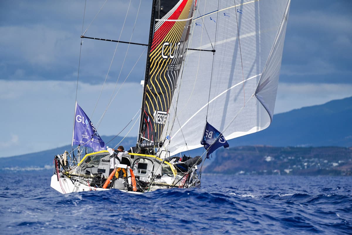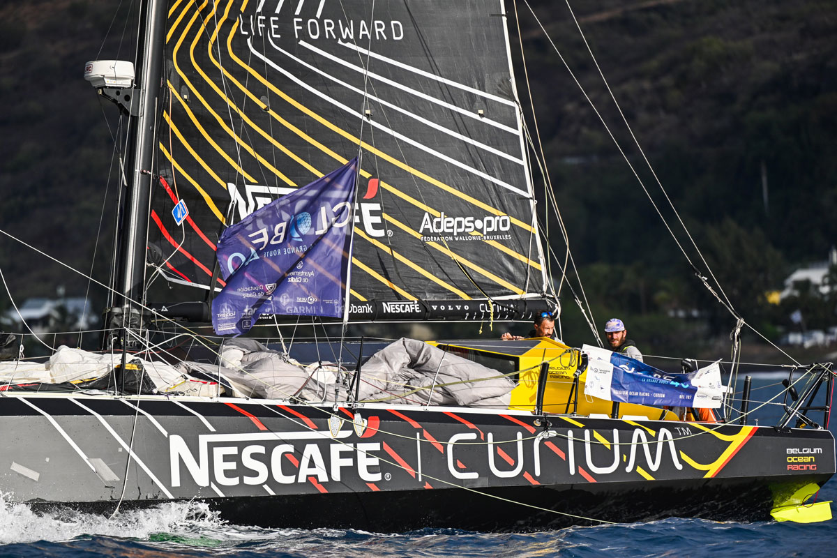 A 350 milles de cette ligne d’arrivée en baie de Saint-Paul et après 8000 milles parcourus, le duel entre CREDIT MUTUEL (Ian Lipinski et Amélie Grassi) et BELGIUM OCEAN RACING / CURIUM (Benoit Hantzperg et Renaud Dehareng) se poursuivait après un 26ème changement de leader intervenu avant-hier au profit du Class40 français.
