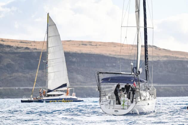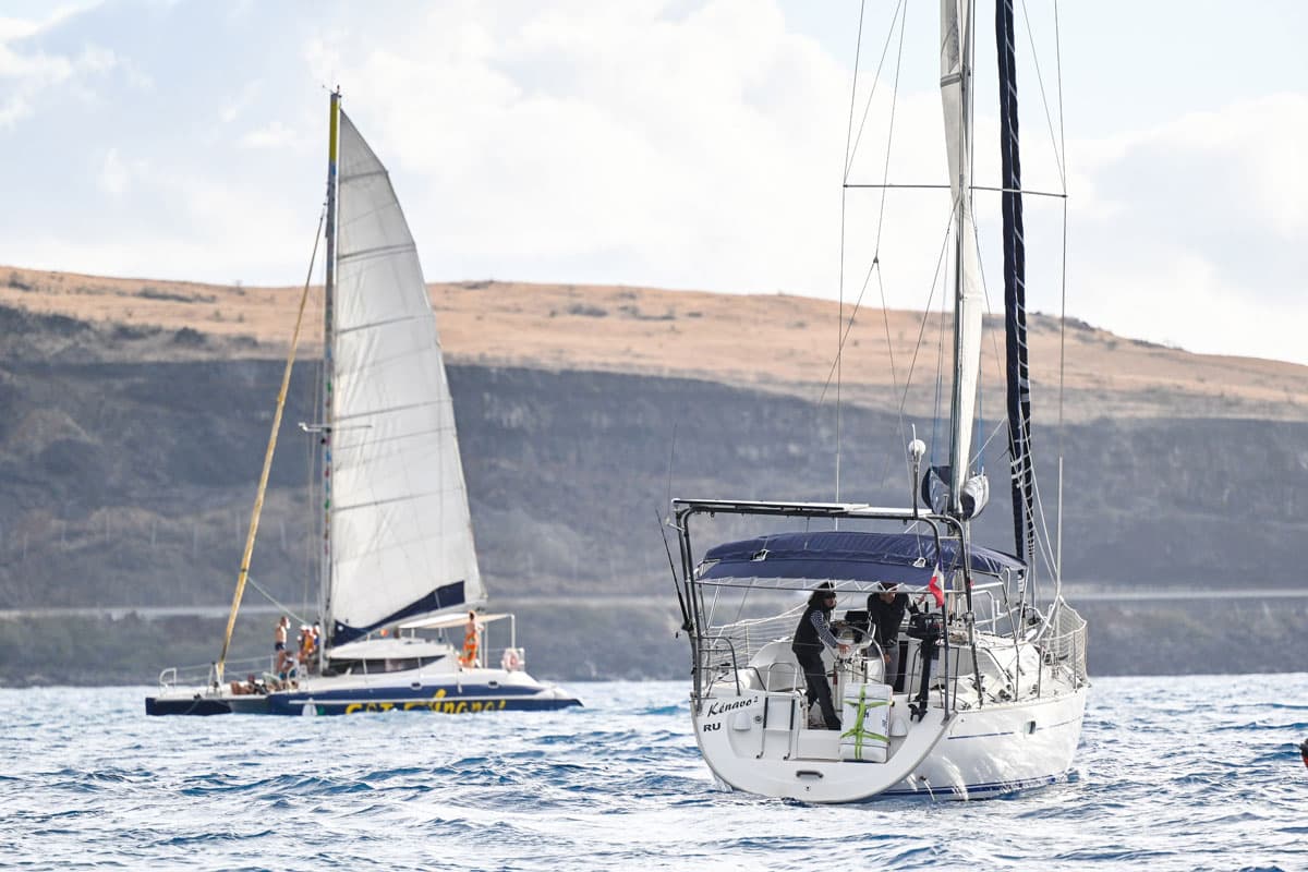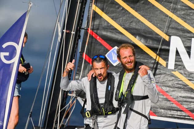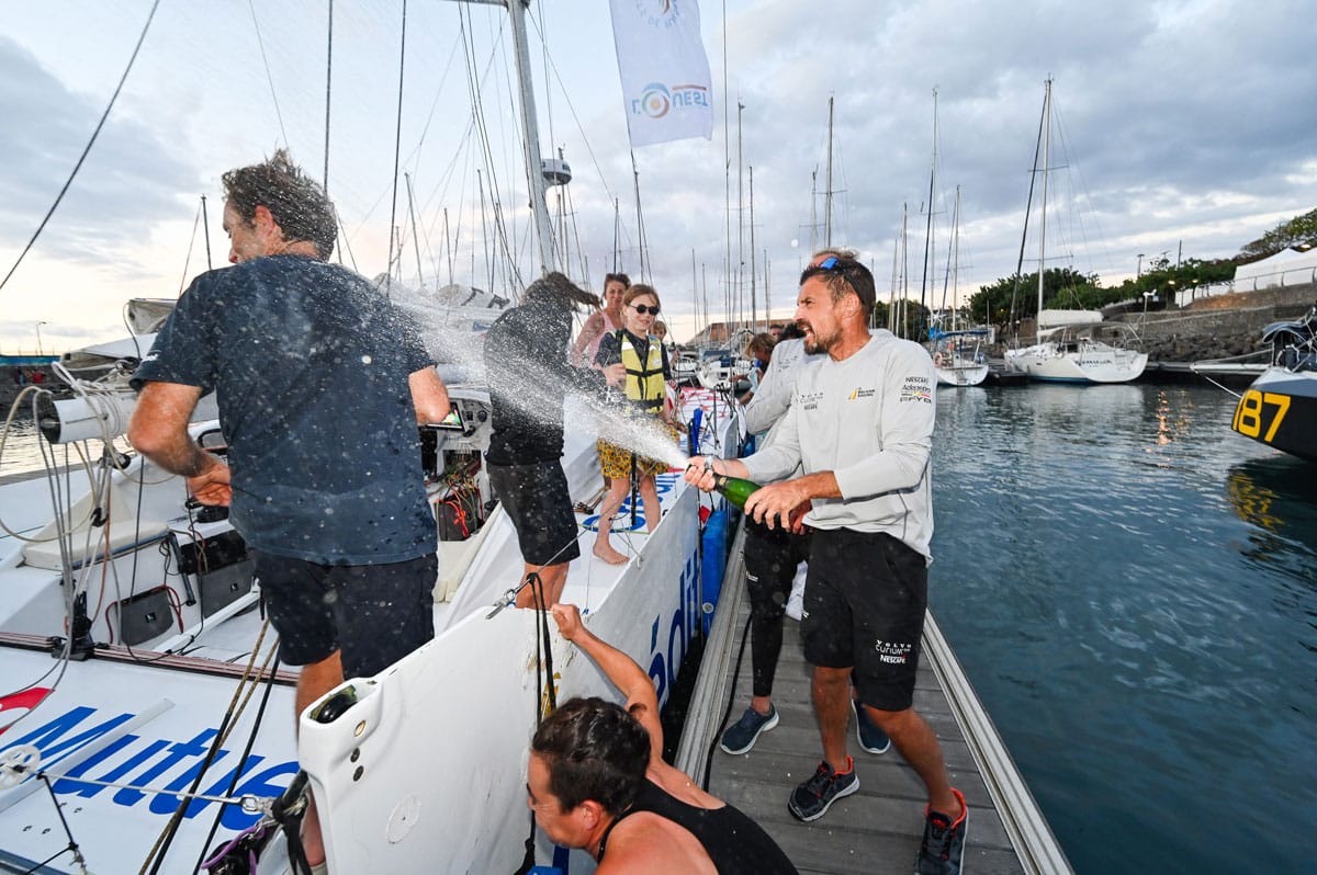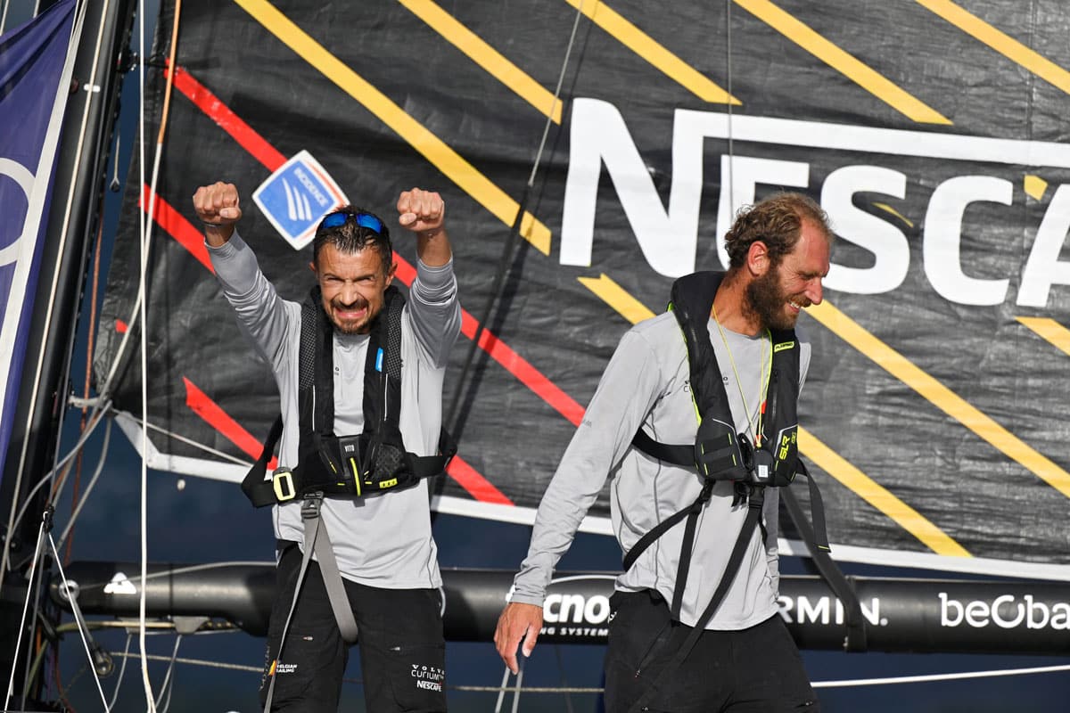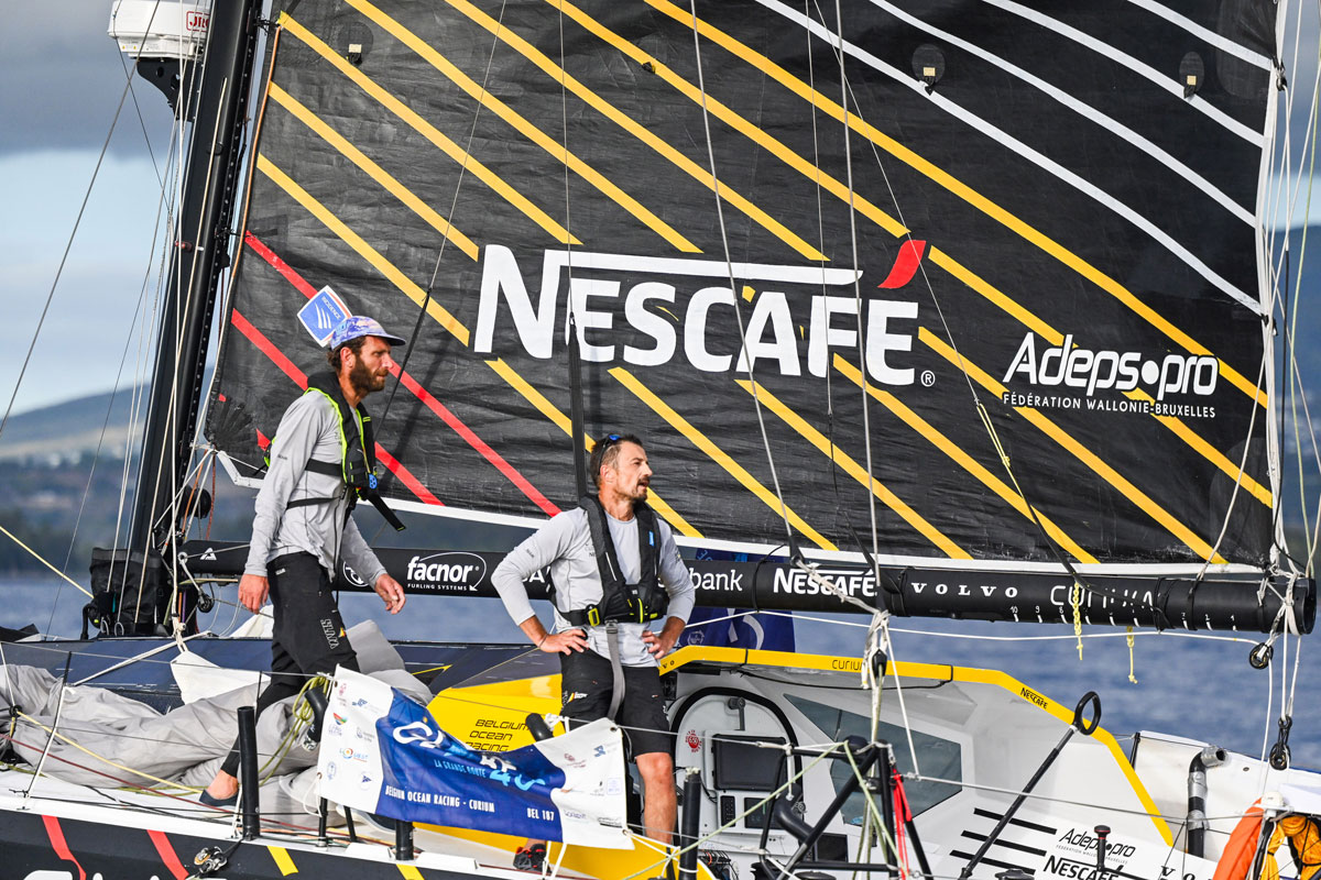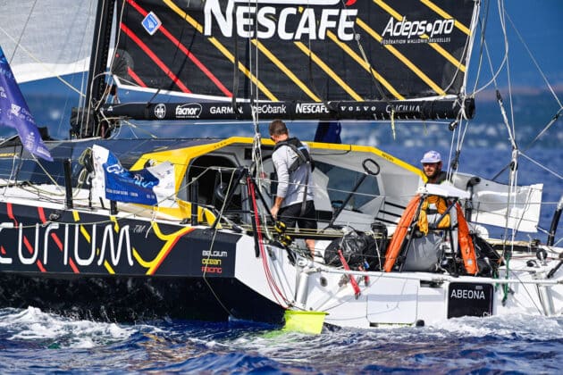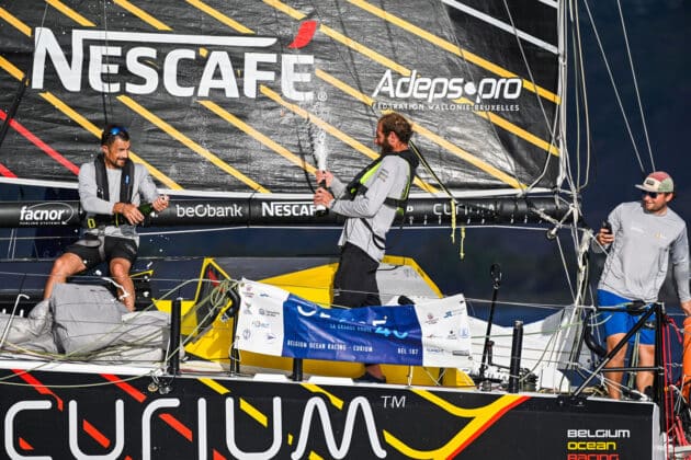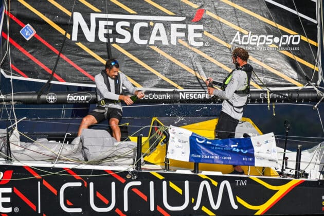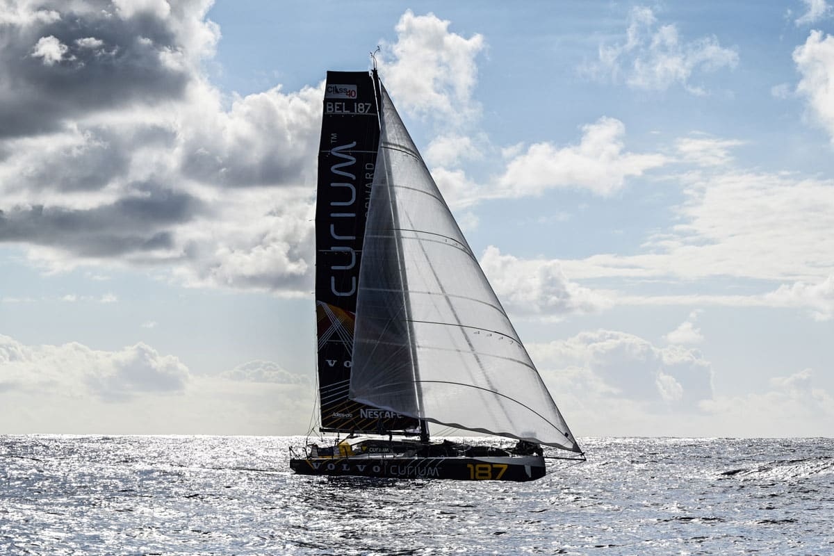 A 350 milles de cette ligne d’arrivée en baie de Saint-Paul et après 8000 milles parcourus, le duel entre CREDIT MUTUEL (Ian Lipinski et Amélie Grassi) et BELGIUM OCEAN RACING / CURIUM (Benoit Hantzperg et Renaud Dehareng) se poursuivait après un 26ème changement de leader intervenu avant-hier au profit du Class40 français.