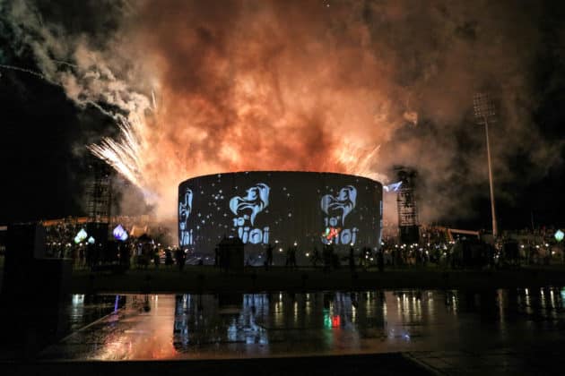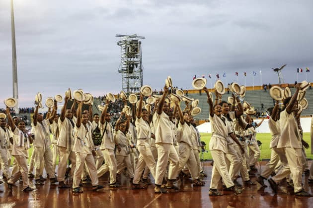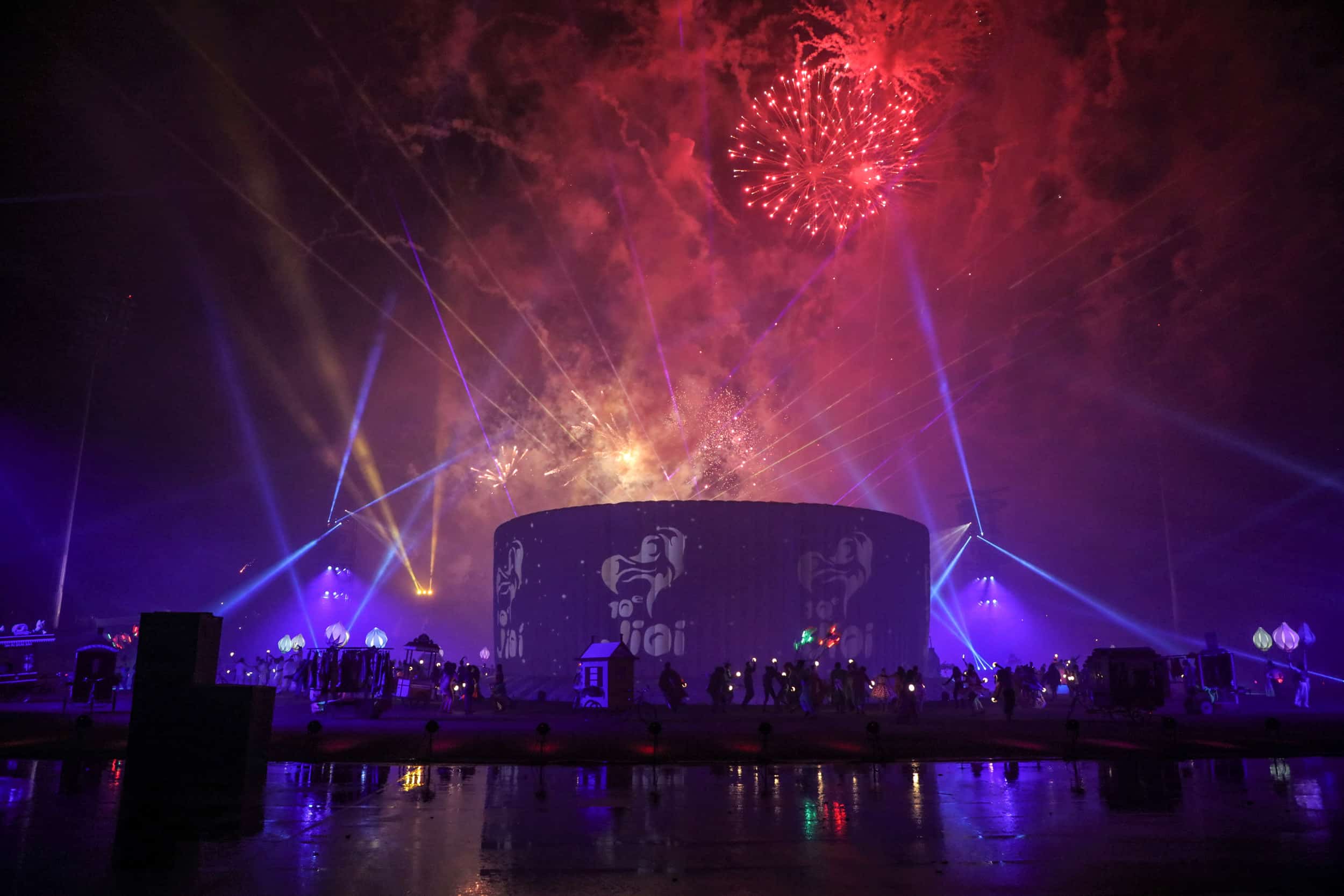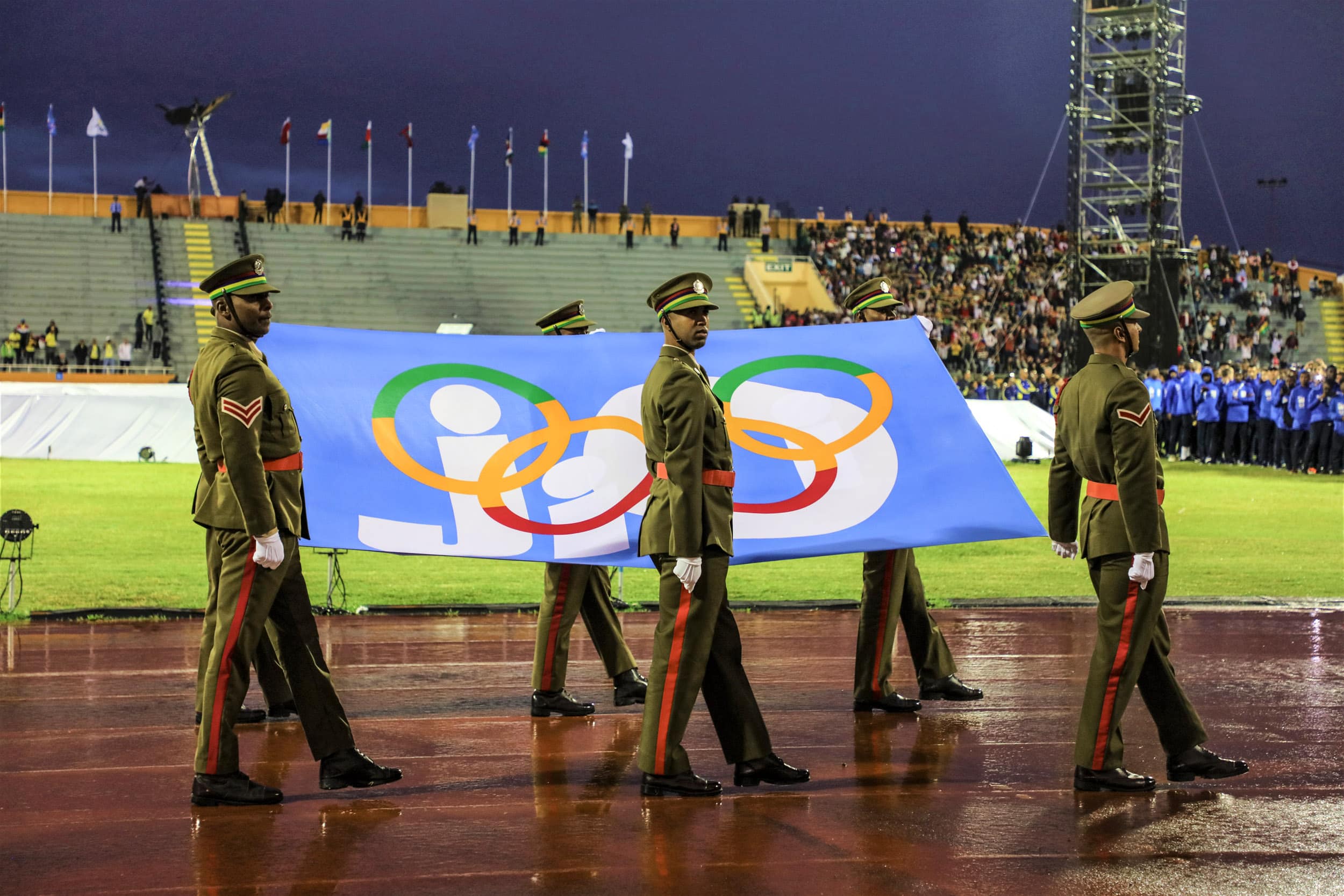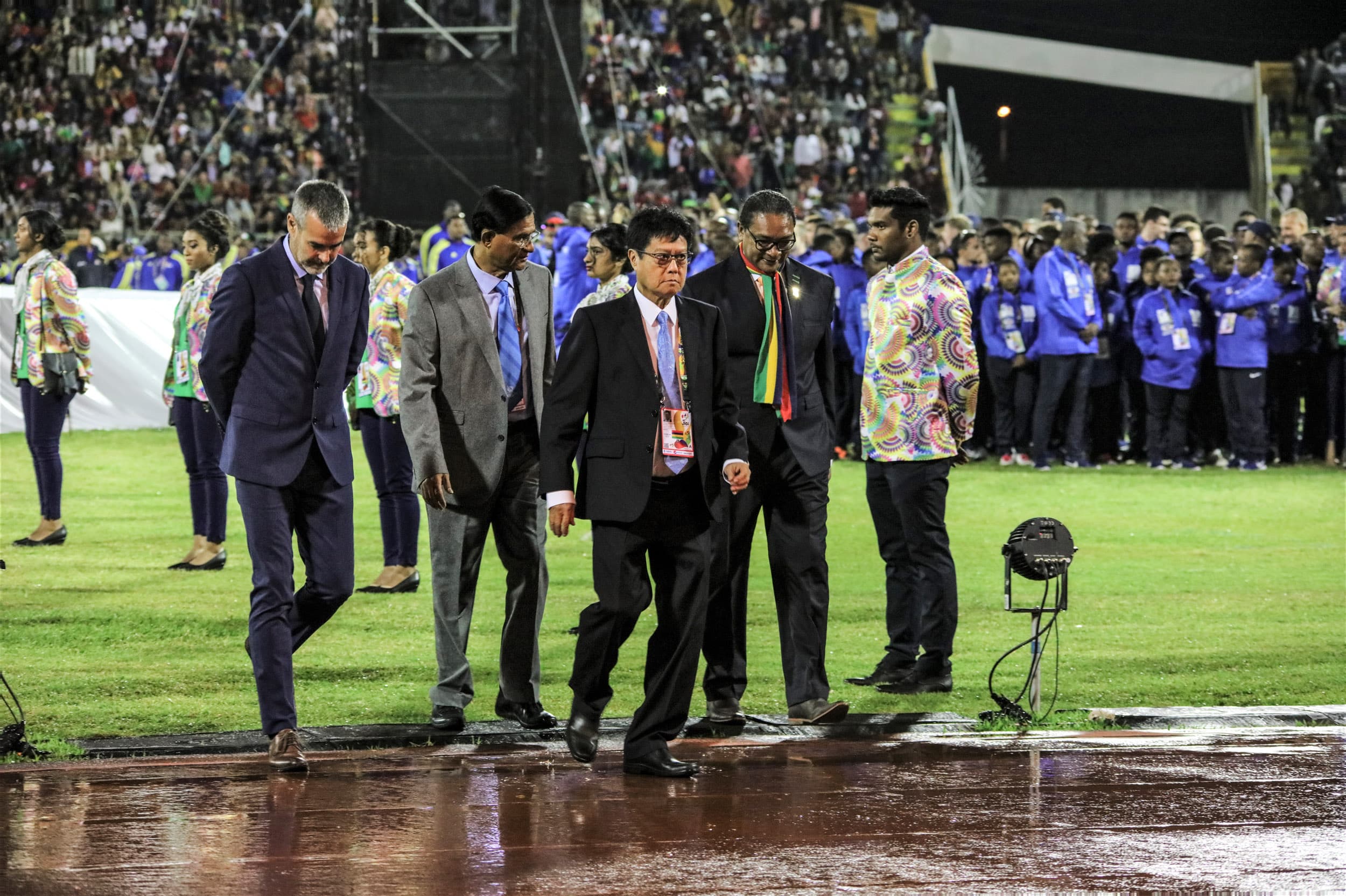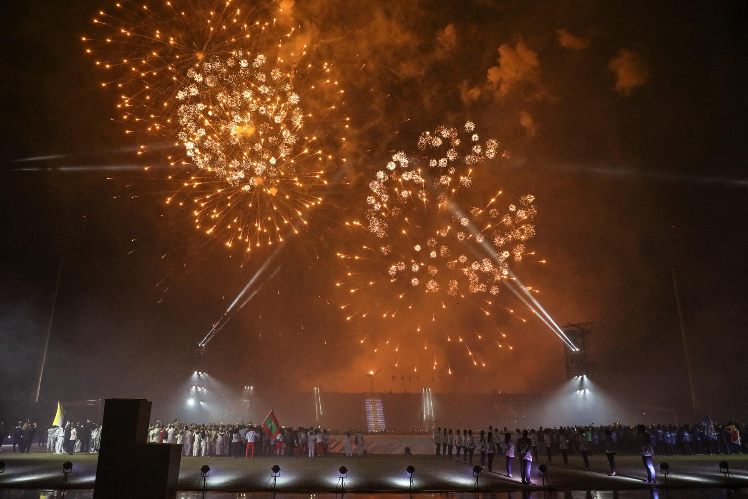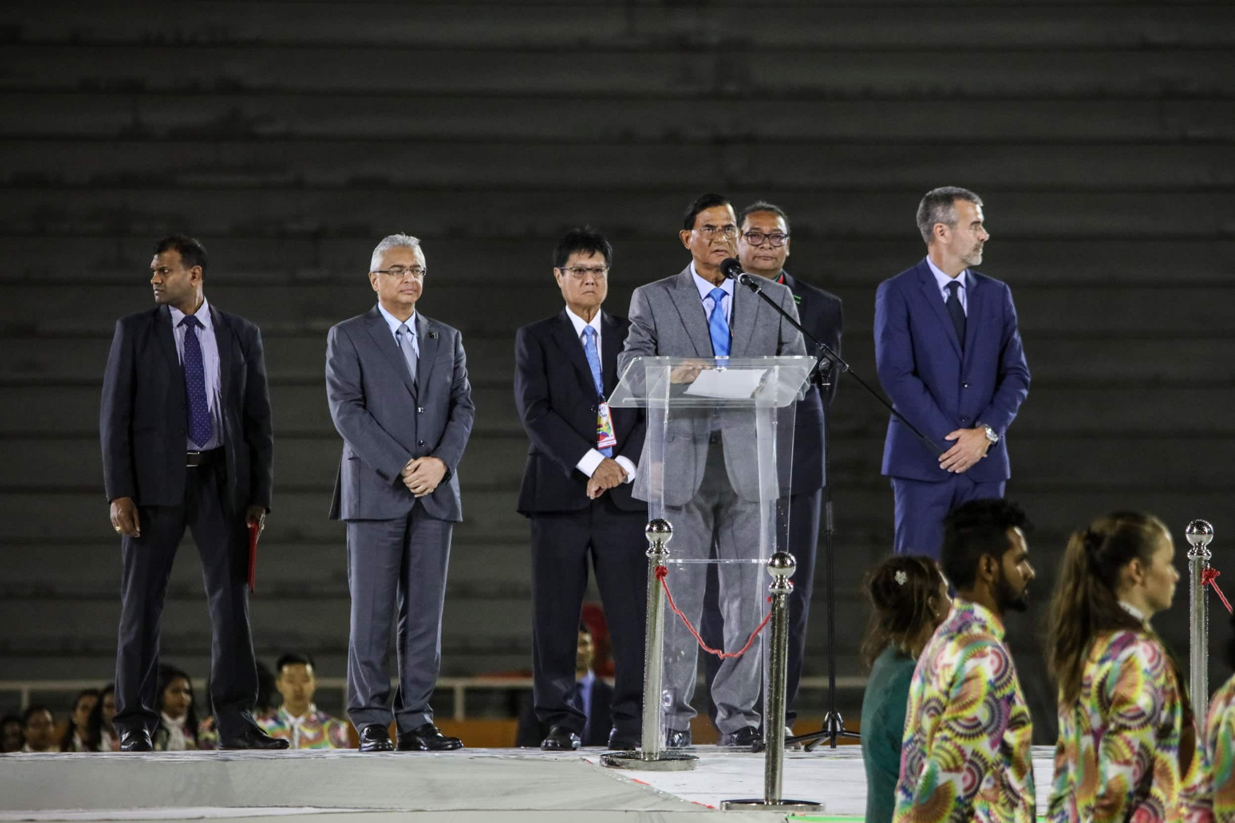 Les centaines d’athlètes réunis sur le pelouse d’Anjalay, ainsi que les quelque milliers de spectateurs présents pour cette cérémonie d’ouverture à guichets fermés, attendent désormais LA star de la soirée, à savoir la flamme des Jeux. Plus attrayante que les discours politiques interminables qui l’ont précédée, Dame Flamme embrase le stade comme prévu. Et un feu d’artifice vient ponctuer son arrivée en beauté. Les Jeux sont officiellement ouverts.