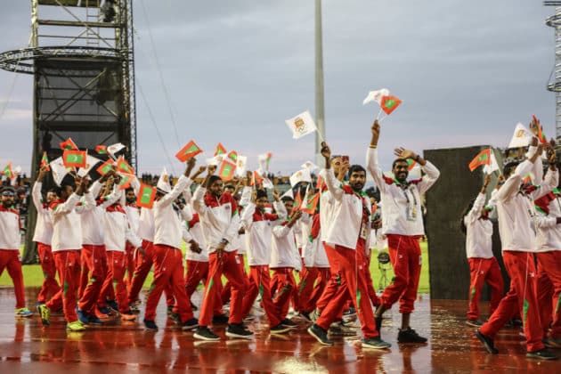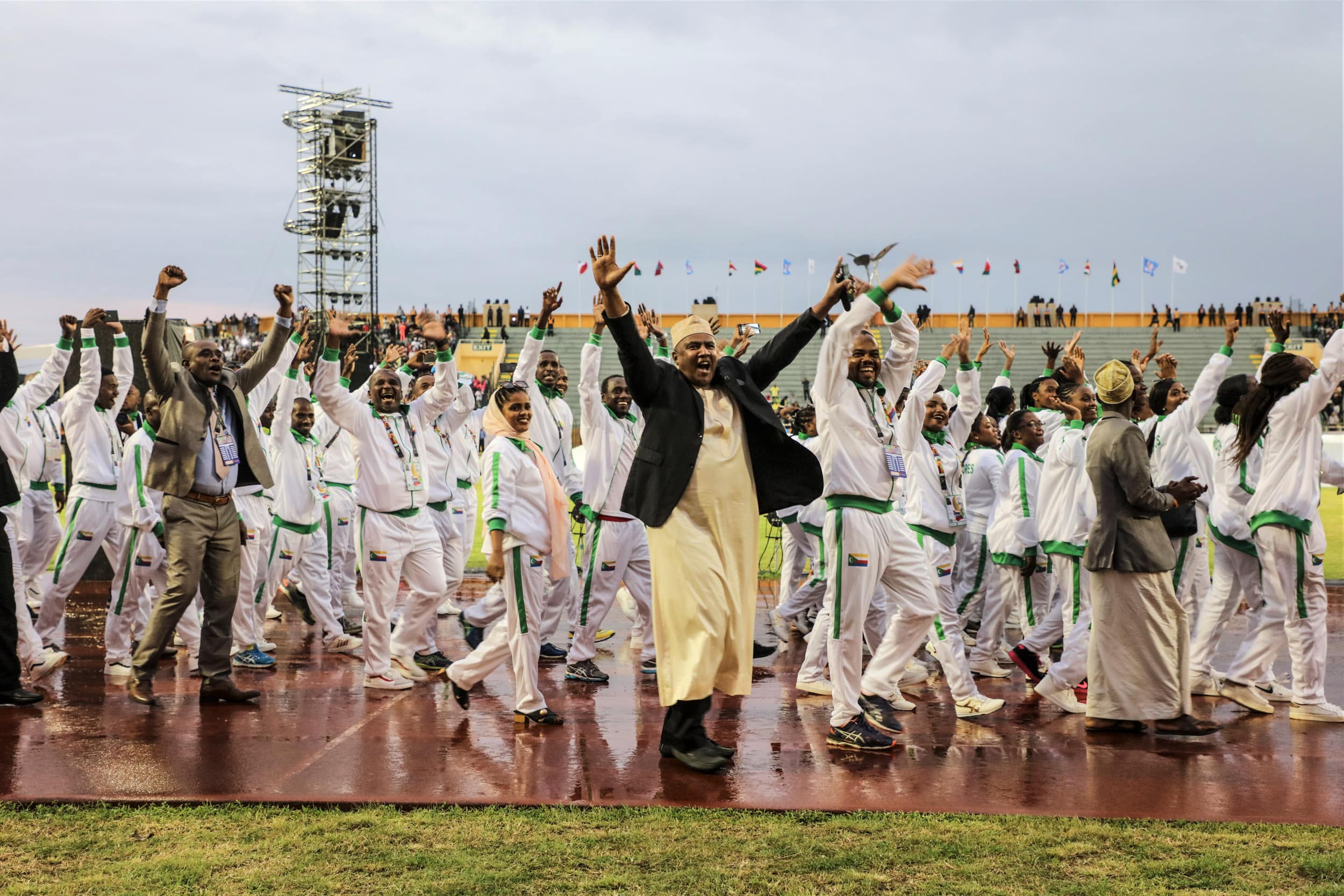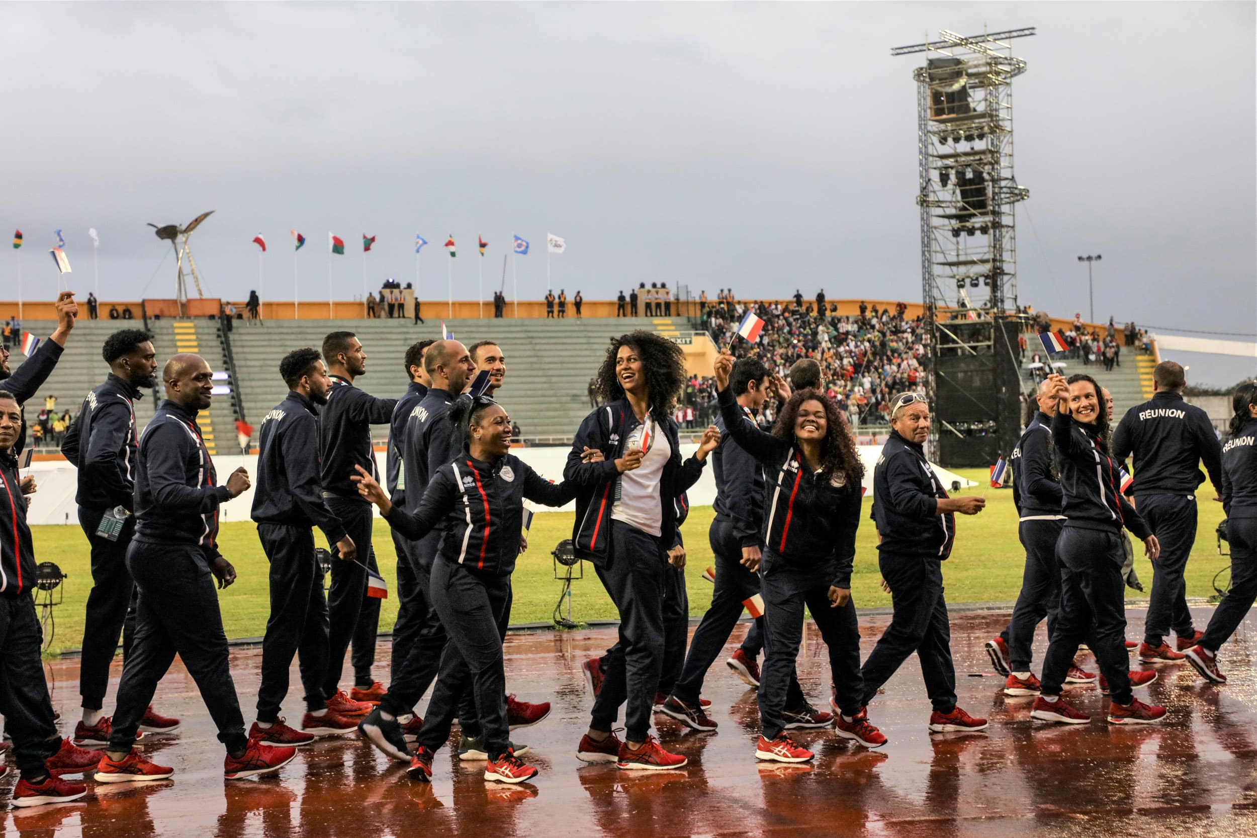 Réunion, Comores, Madagascar, Seychelles, Maldives… Les nations se succèdent et l’on attend désormais avec impatience de voir sous quel drapeau Mayotte va faire son apparition. Il y a quatre ans, au stade olympique de Saint-Paul, les dirigeants comoriens avaient moyennement goûté que le clan mahorais défile sous les couleurs bleu-blanc-rouge, qui sont pourtant les leurs. Un épineux problème diplomatique vieux comme le monde, cette fois-ci habilement contourné. Mayotte arbore le drapeau des Jeux à l’île Maurice. Sa majesté Azali Assoumani étant présente dans les tribunes, tout le monde respire un grand coup.