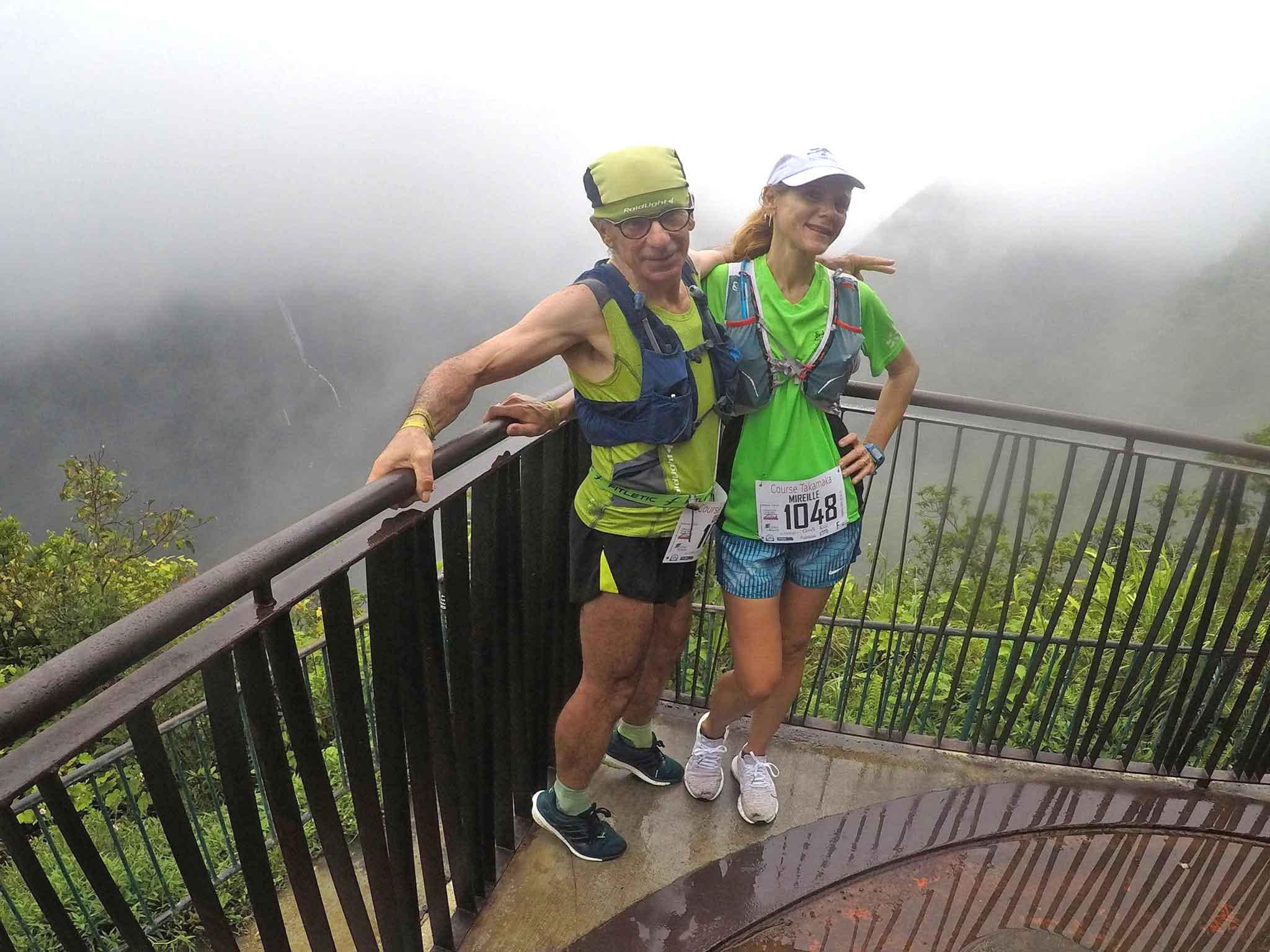 Pas de mystère, en matière de courses de côtes, c’est bien celle de Takamaka qu’on préfère ! J‘ai couru 5 de ses éditions officielles, la dernière fois 1er de cat. pour mon moins bon temps, 1 h 11, alors qu’ordinairement, c’était en 1 h 08, ce qui me plaçait dans les 20 du scratch. Mireille s’est aussi hissée sur les podiums des 3 dernières éditions, à l’arrivée jugée au PK 12, au niveau de la vaste aire de jeux et de pique-nique qui fut jusqu’en 1985 le « Village Nature » EDF, lieu de vie familiale des techniciens. Eddy – un authentique gars de l’Est qui sait honorer sa verte province malgré son goût prononcé pour l’Italie et ses copieuses pizzas – a aussi couru les 2 dernières éditions officielles, et nos 2 « OFF ».