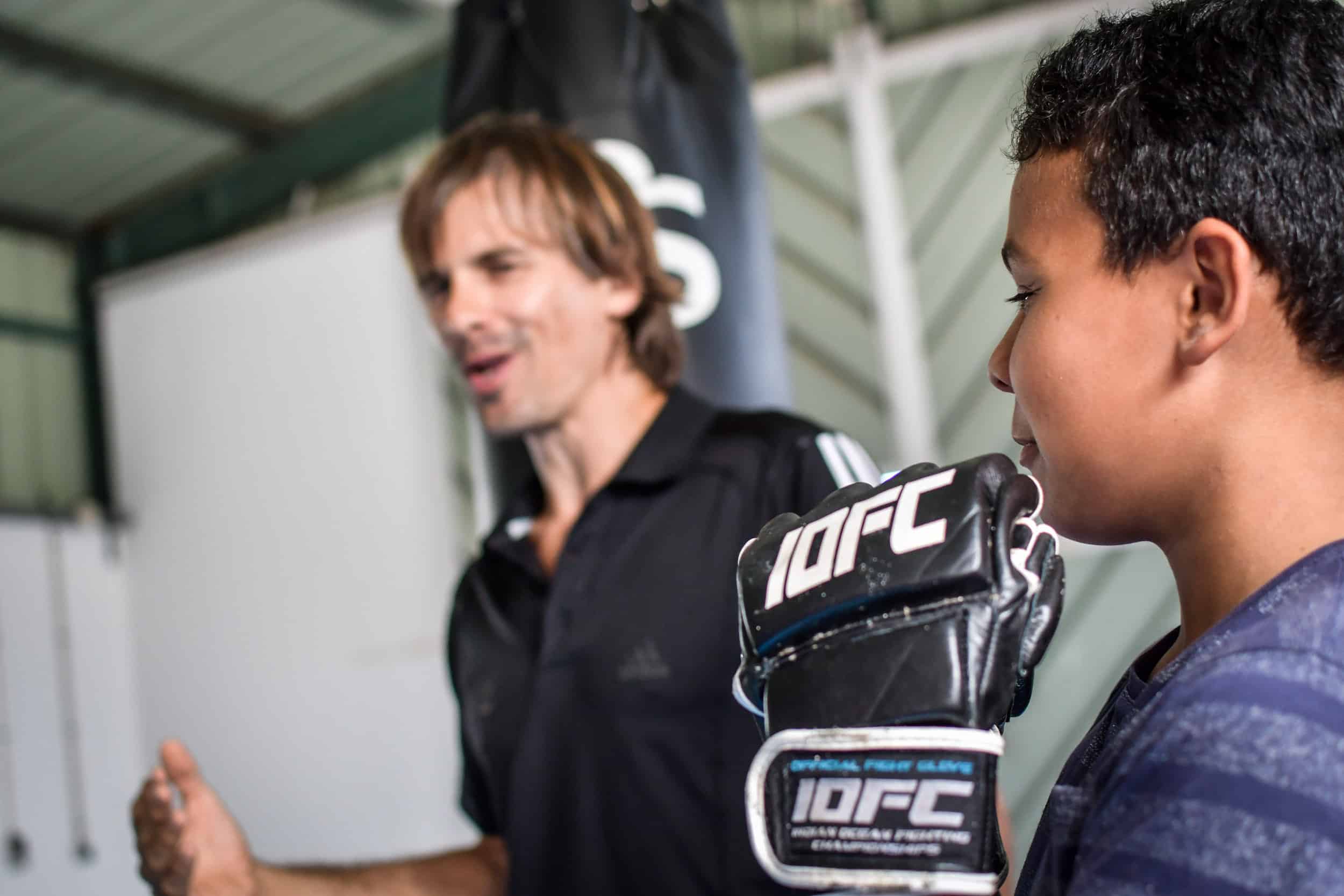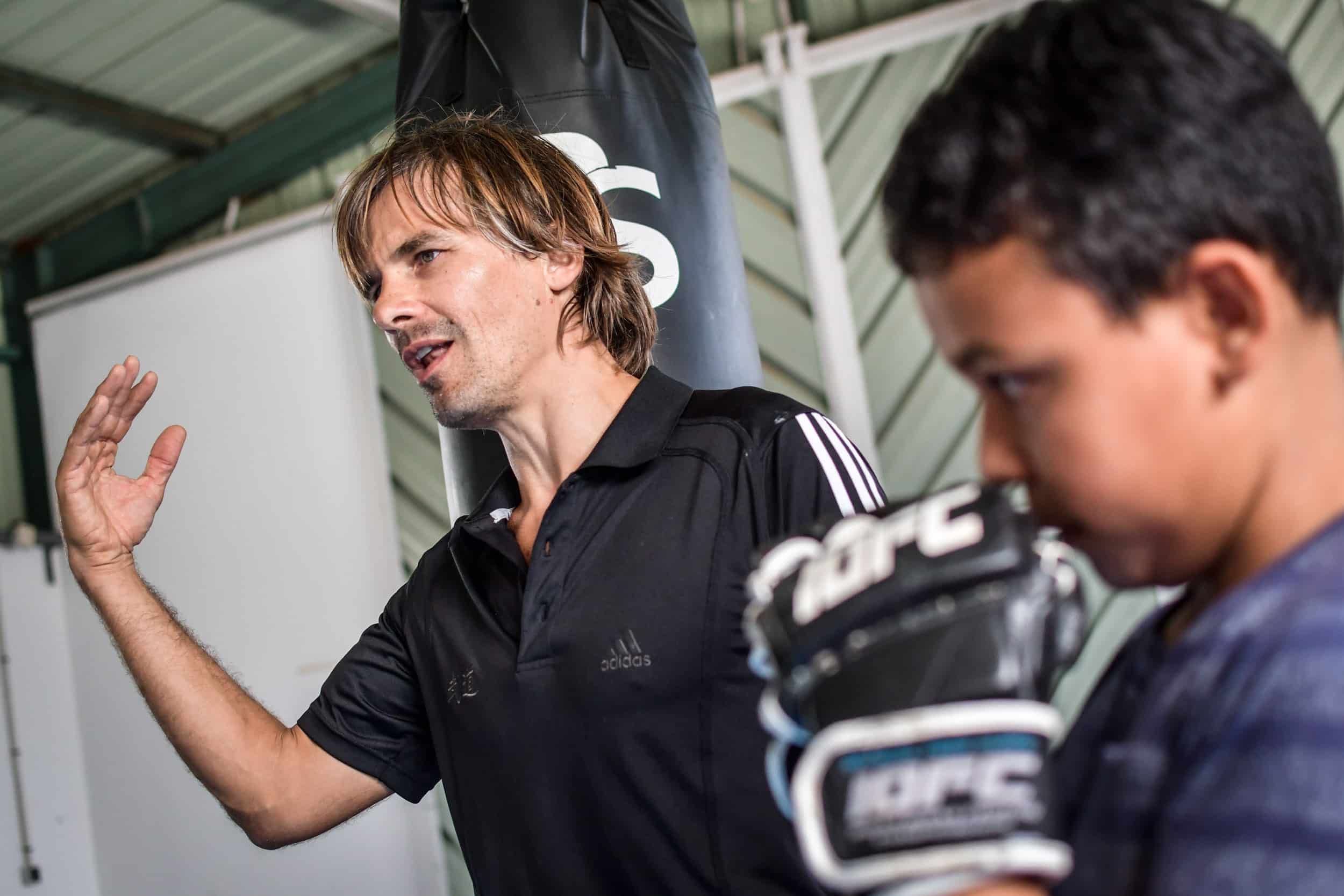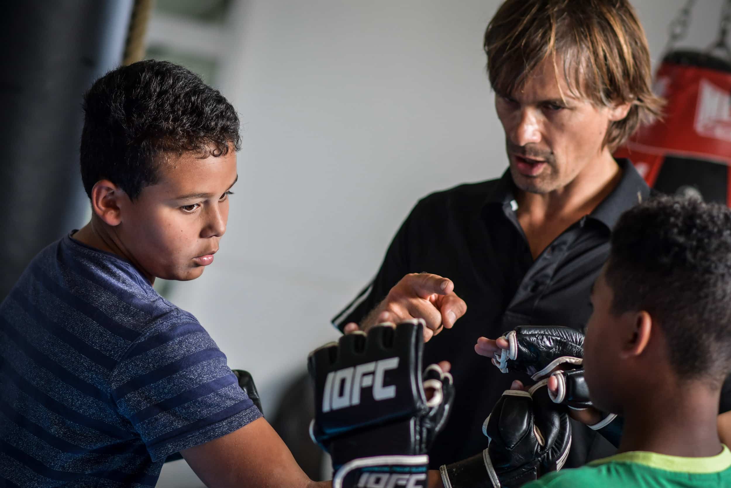 La particularité de cet atelier bi-hebdomadaire? L’enseignement dispensé. Passé les quelques exercices d’assouplissement initiaux empruntés au yoga, les marmailles enfilent rapidement les mitaines propres au MMA (Mixed Martial Arts), toujours interdit de compétition en France mais désormais décliné à un public toujours plus nombreux par des éducateurs certifiés. Et entament des percussions (uppercuts, directs, crochets…), des projections et des soumissions (clés de bras,…) empruntées à des disciplines aussi variées que la boxe anglaise, la lutte, le jiu-jitsu ou le pancrace.