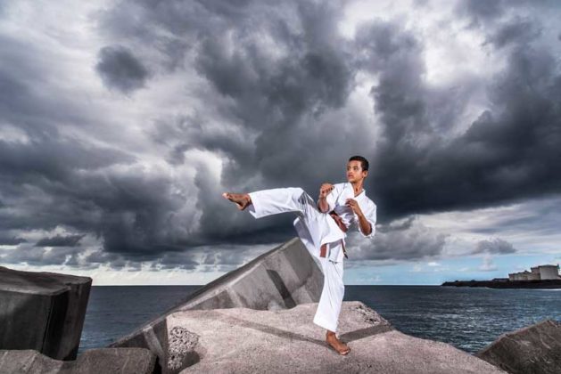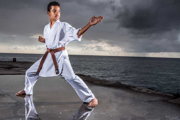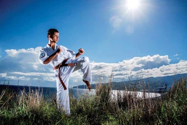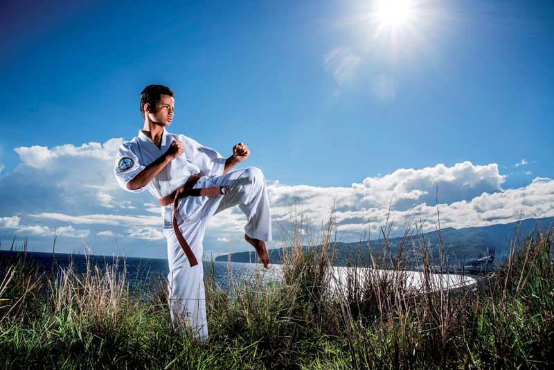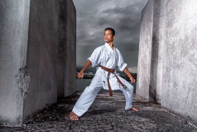 En toute simplicité, Louis-André Goulay introduit son propos. La notion d’humilité fait partie intégrante de son être. Et de son art. Elle lui a notamment été inculquée par Sensei Pierre Grondin, le 7e dan du RKH de Sainte-Clotilde – plus haut gradé sur l’île à enseigner le karaté – qui l’a pris sous sa coupe depuis quatre ans maintenant. Cette valeur propre à « l’école de la vérité ultime », Louis-André en avait cependant déjà naturellement hérité dans le sillage d’un grand-père paternel haut en couleur en tant qu’ancien « gorille » du général De Gaulle. Entre autres. LE grand inspirateur de sa vie.