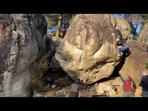 Juste avant que la neige ne s’invite au sommet des blocs bellifontains, Oriane Bertone a réussi à cocher « Super Tanker », une traversée ouverte par Antoine Vandeputte en 2007.  Ce bloc n’est autre qu’une extension de « Atrésie » 8A, que la jeune grimpeuse réunionnaise s’est surprise à enchaîner en seulement une session quelques semaines plus tôt. Après cette croix, je me suis dit que je pourrais essayer « Super Tanker », l’extension de ce bloc. J’avais vu la vidéo magique de Jan Hojer dans ce bloc, qui est beaucoup plus grand que moi. J’ai donc toujours cru que c’était une ligne de rêve, mais impossible pour moi. Finalement, je suis très heureuse d’enchaîner ce bloc deux sessions après « Atrésie », avec presque la même méthode ! Enfin une matinée sèche et fraiche à Bleau ! Je sors Atrésie (8A) à Cuvier Rempart en quelques essais et Carnage-Bérézina assis (8A) à Bas Cuvier juste après. C’est sûr que les bonnes condis changent la donne ! Trop cool de refaire du naturel en forêt ! ».