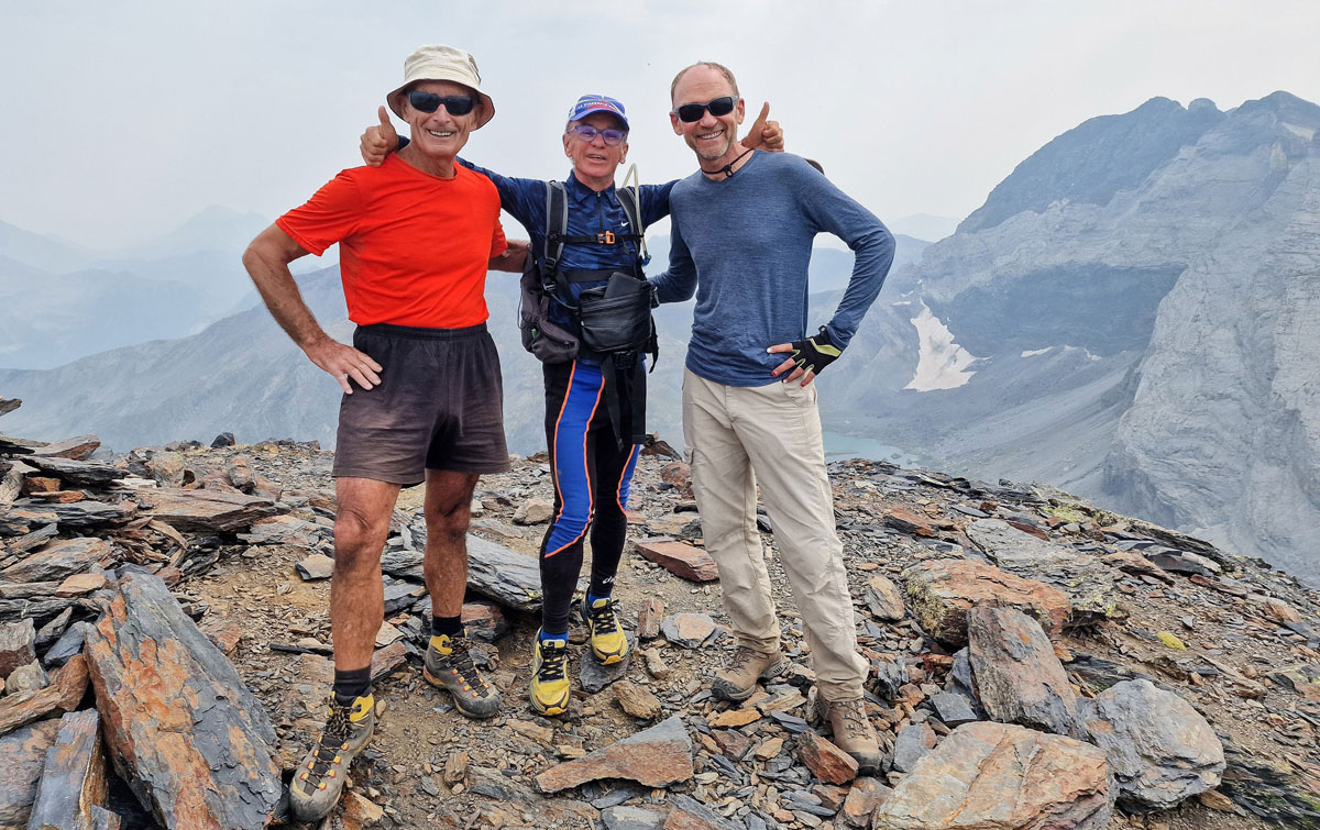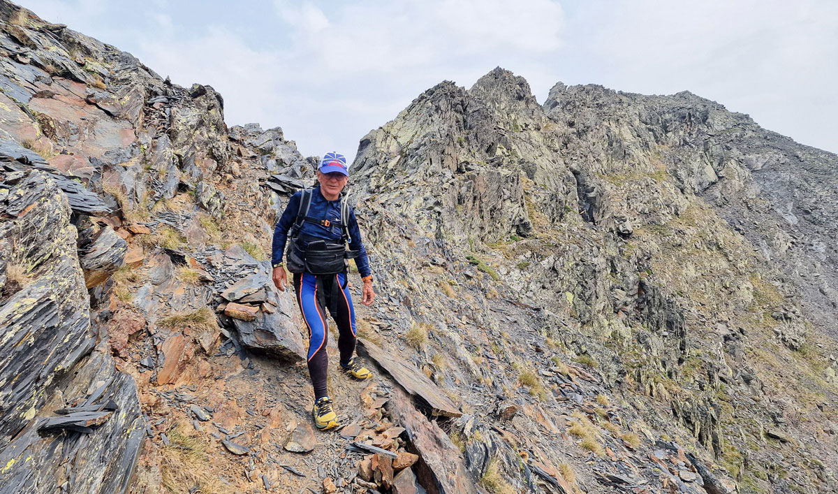 Quel plaisir, sur une crête gazeuse flirtant avec les 3000 m d’alti, de partager une joviale discussion avec Alain Thoueilles, aimant à rappeler que son nom évoque directement, à la fois le lieu de rassemblement des troupeaux de brebis, et le pâtre qui les gère… À sa manière, il gère tous les pics éparpillés dans les Pyrénées, et il est bien le seul – même si cet authentique exploit d’un parcours de vie, demeure peu connu… – à y avoir grimpé la totalité les 292 sommets de plus de 3000, sans compter les secondaires, notamment autour des Marboré, Aneto, Pic Maudit, etc., 297 ! Il les a ainsi tous reliés symboliquement ; mais quand cela a été possible, il l’a fait aussi physiquement, via les crêtes. Un passionné qui préfère rester discret. Google ne mentionnera pas qu’il a ce record de sommets, pas plus que j’ai celui du nombre de Diagonales finies – dûment sourcé, mais le performatif au présent et l’exhibition 2.0, effacent le socle des réalités -, et on s’en fiche bien. Encadrant au Club Alpin Français, Alain me décrit telle crête de la manière dont un pilote de la patrouille de France mime ses figures de voltiges pour les répéter avec une exacte précision… 82 ans – on ne lui donnerait jamais cet âge -, expérimenté et dynamique comme personne, bon pied, bon œil, on peut lui faire totalement confiance. Peu de jeunes traileurs en vue sur les réseaux sociaux pourraient le suivre dans ses sorties aventureuses, avec un pedigree qu’ils ne sauraient imaginer, et encore moins atteindre un jour… Son acolyte, Dominique Bozec, est un spécialiste des sommets de plus de 6000 dans 6 pays d’Amérique Latine… Le duo de choc est en parfaite symbiose avec le terrain ; absolument aucun lien avec les réseaux sociaux dont ils se moquent bien, en vivant le meilleur sans se montrer, moins par retrait que du fait d’un indicible ; montagnards à l’état pur, dans un esprit d’aventures à l’état pur. Ce parcours de funambule des crêtes qui se poursuit à plus de 80 ans après être déjà passé par la totalité des sommets Pyrénéens, ne serait-ce pas finalement encore plus Fou – dans la durée et en secret solo – que les ponctuels exploits médiatisés de Kilian Jornet aidé par toute une équipe, avec une médiatisation mondiale ? Les crêtes de rocs ne font pas que des crêtes de coqs…