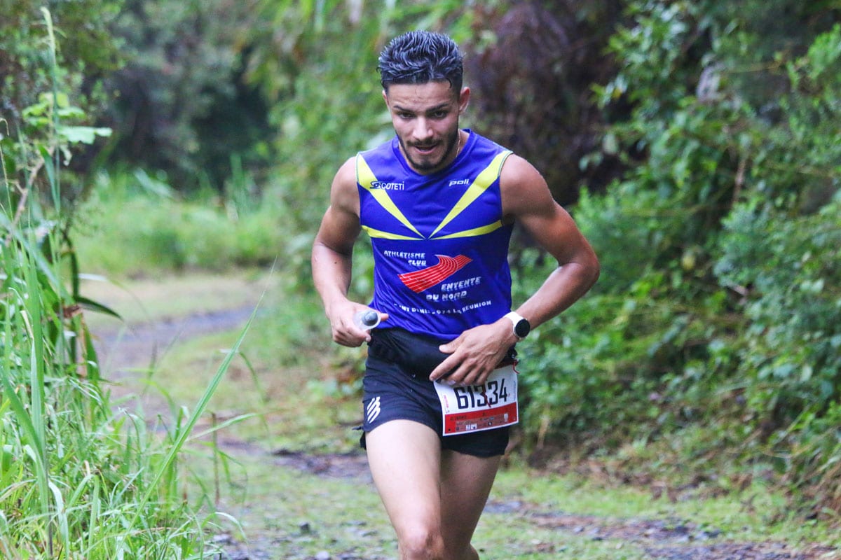 Sur ce terrain et pour le titre de Champion de la Réunion Trail court 2025, l’espoir Théo a décroché la timbale « Aujourd’hui ce fut un véritable combat avec des conditions météorologiques qui furent bien capricieuses, avec des grosses pluies et un vent glacial, surtout des sentiers techniques qui ne laissaient place à aucune erreur. Dès le départ le rythme est effréné, je reste dans le groupe de tête jusqu’au 1er ravito. A mi-course je me retrouve à 7’ du leader et 4ème derrière le malgache. En véritable descendeur, je comble mon retard pour arriver à une minute de Mamy …les derniers kilomètres n’ont pas été aussi concluants avec des crampes qui s’installent, Mamy me reprend, une belle satisfaction de gagner ce titre de Champion de Trail court 974 ».souligne Théo.