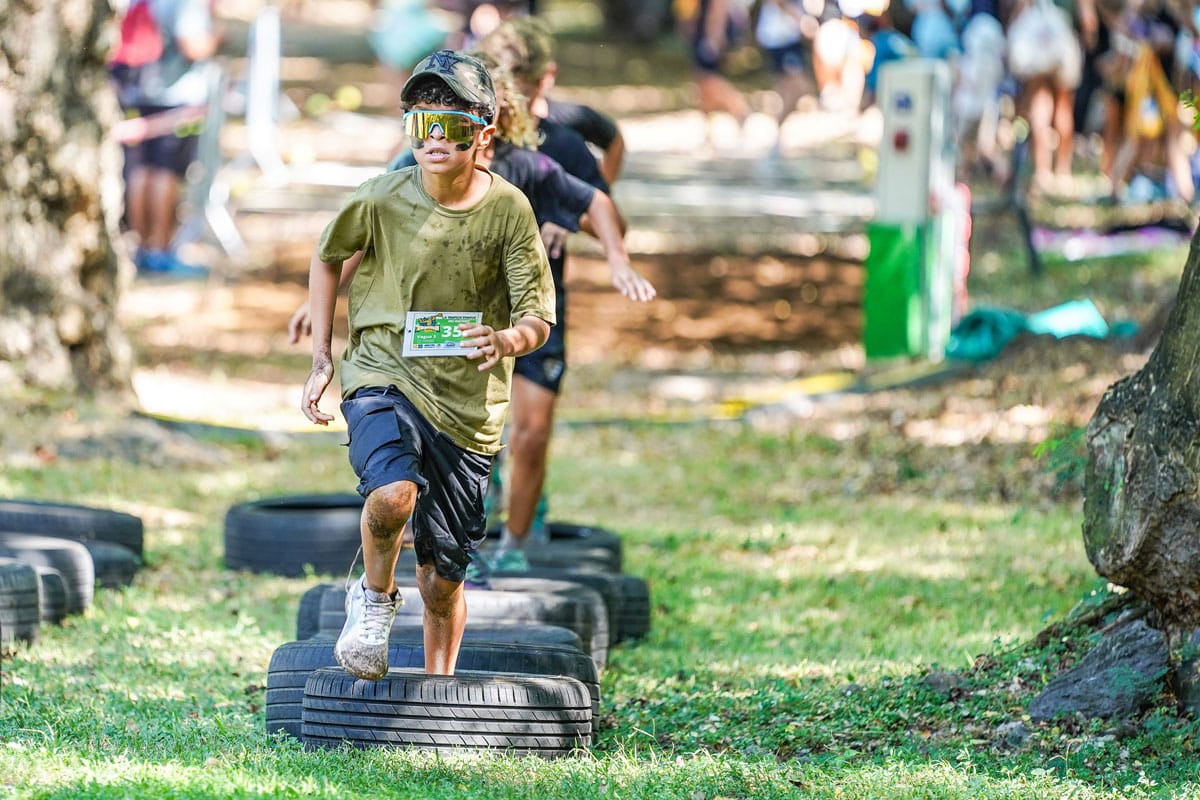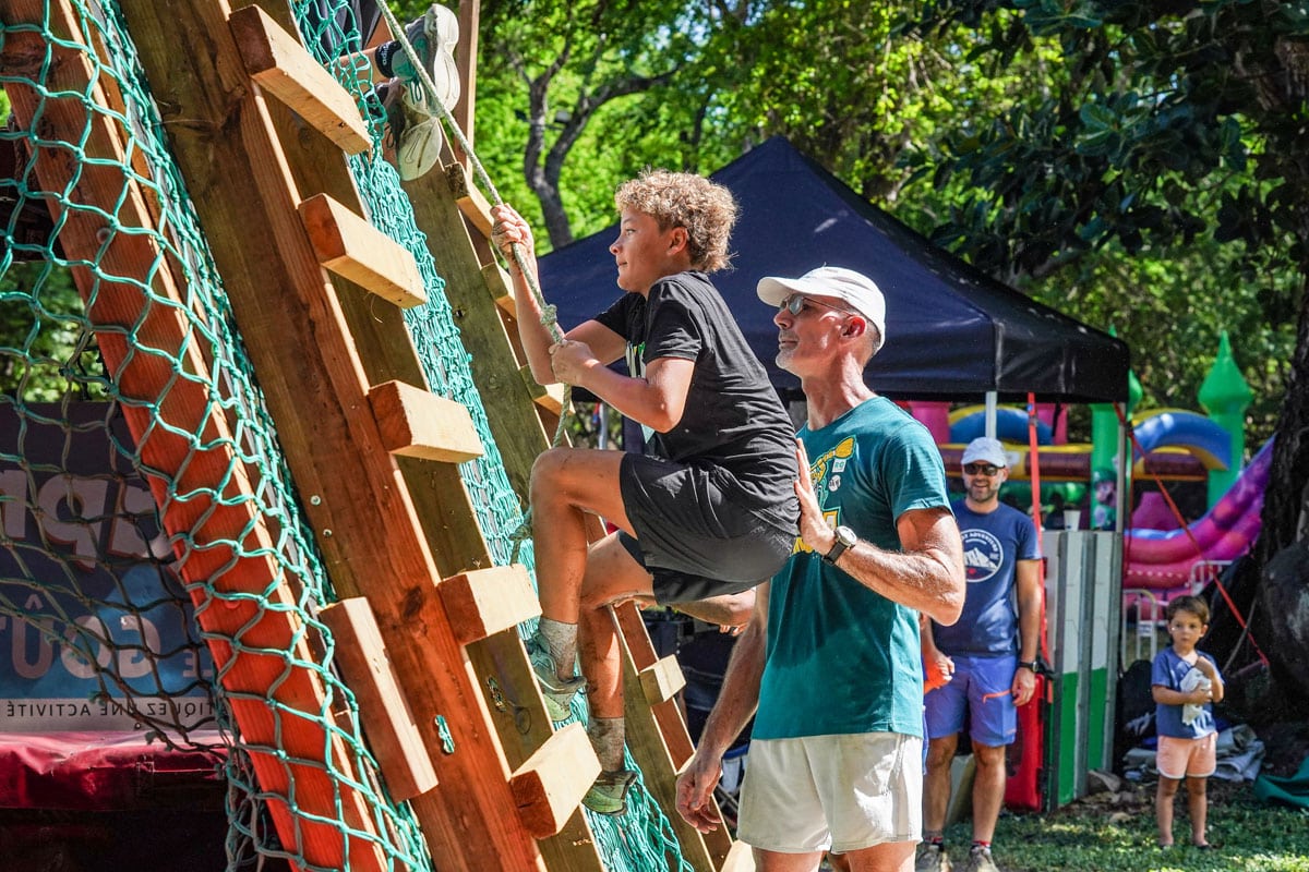 Les obstacles, inspirés de la version sénior, ont été entièrement adaptés aux enfants et étaient encadrés par du personnel qualifié afin de garantir leur sécurité. Un accompagnement parental était possible tout au long du parcours pour les soutenir et les motiver.